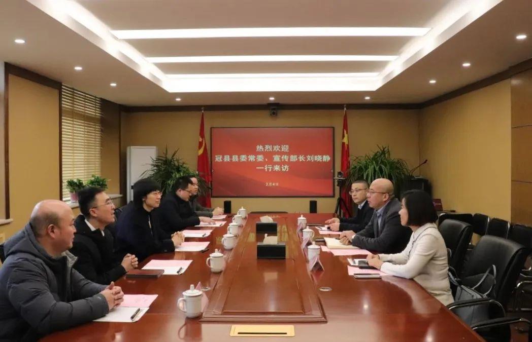 2月4日,冠縣縣委常委、宣傳部部長劉曉靜一行到訪山東文旅集團(tuán),集團(tuán)黨委委員、副總經(jīng)理孫超會見。