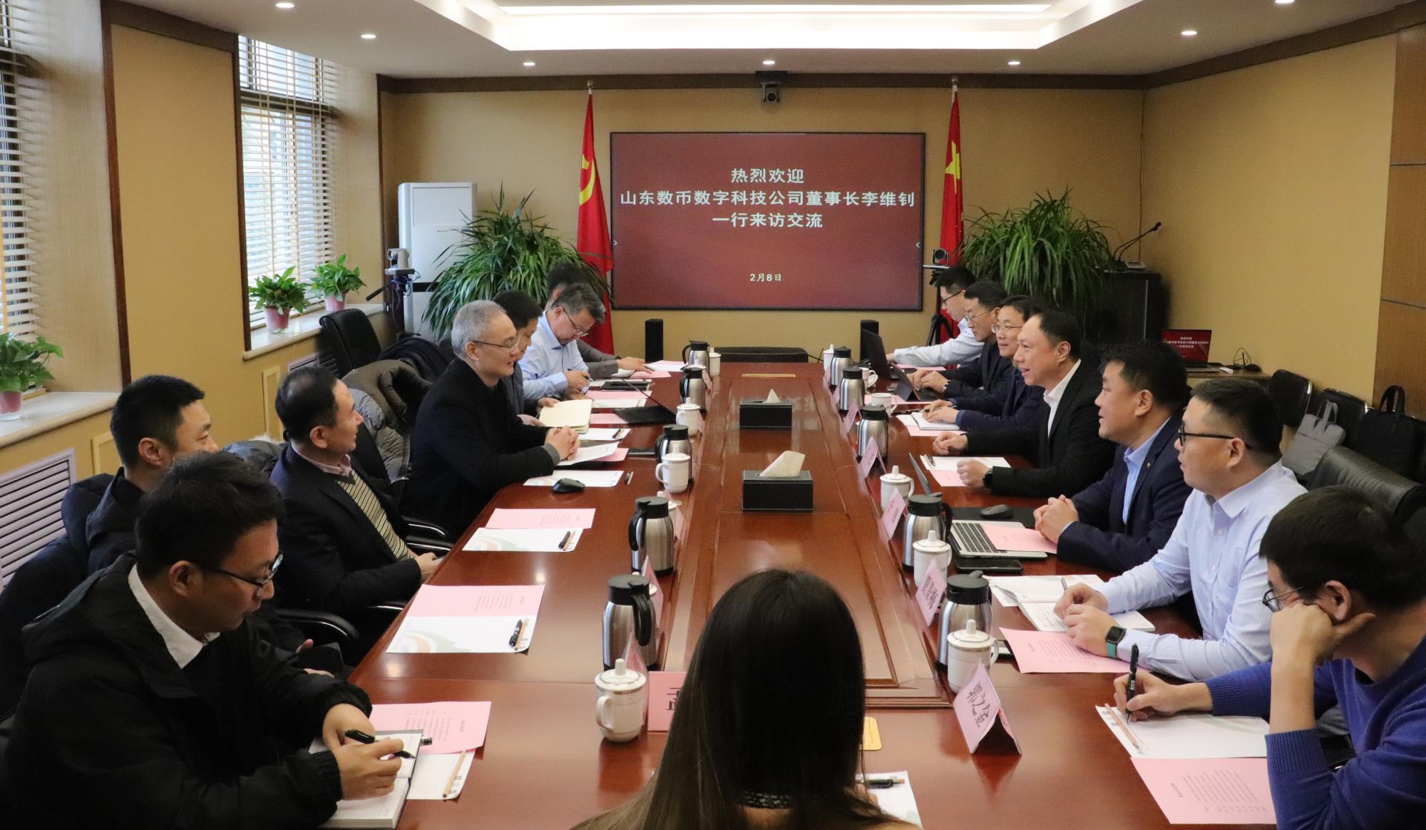 2月8日,山東數(shù)幣數(shù)字科技有限公司董事長、北京千眼順風(fēng)科技有限公司執(zhí)行董事李維釗率隊(duì)到訪山東文旅集團(tuán),集團(tuán)黨委書記、董事長丁藝會見。