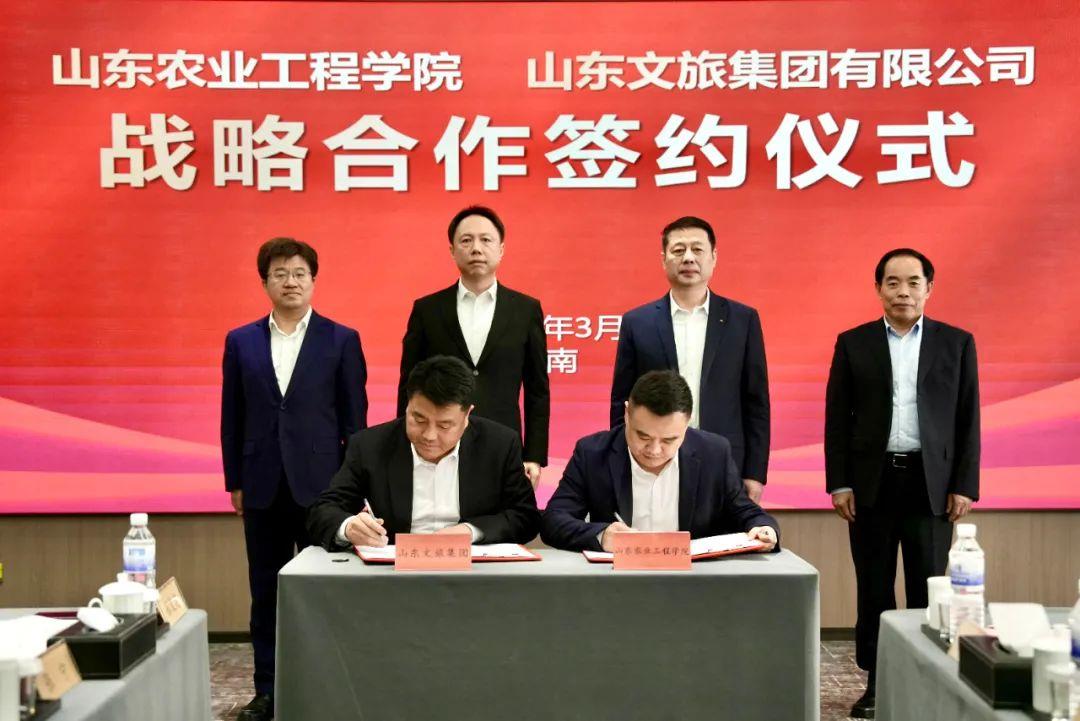 儀式上,山東文旅集團(tuán)黨委委員、副總經(jīng)理,山東文旅集團(tuán)科技發(fā)展有限公司董事長于偉與山東農(nóng)業(yè)工程學(xué)院黨委委員、副校長周吉鵬代表雙方簽署戰(zhàn)略合作協(xié)議。協(xié)議約定雙方在共建省級農(nóng)文旅融合現(xiàn)代產(chǎn)業(yè)學(xué)院、共同發(fā)起產(chǎn)教融合共同體、共建數(shù)字校園實(shí)驗(yàn)室、建立校企人才共育基地、建立校企課題合作機(jī)制、共建綠色節(jié)約型校園等六個(gè)方面開展合作。下一步,雙方將組建工作專班,建立深入的合作機(jī)制,圍繞人才培養(yǎng)、技術(shù)研發(fā)等方面,聚焦農(nóng)業(yè)科技創(chuàng)新與文化旅游產(chǎn)業(yè)的深度融合,推動合作取得豐碩成果。