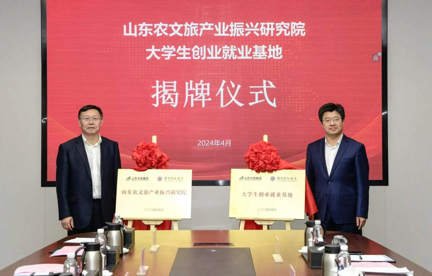 林松柏與門家春共同為“山東農(nóng)文旅產(chǎn)業(yè)振興研究院”“大學生創(chuàng)業(yè)就業(yè)基地”揭牌
