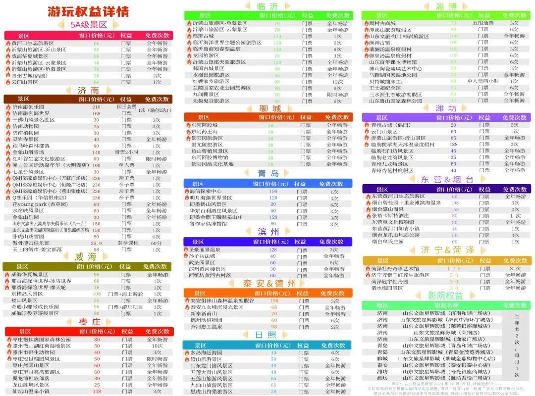 “好客山東一碼通”惠民文旅年卡加盟景區(qū)總數(shù)突破110家,產(chǎn)品覆蓋山東全省7家5A級(jí)景區(qū)、50余家4A級(jí)景區(qū),更有高爾夫球場(chǎng)、溫泉度假村、滑雪場(chǎng)、親子樂(lè)園、豪華影院等眾多高端休閑娛樂(lè)資源,總價(jià)值超萬(wàn)元,全方位滿足游客多元化、高品質(zhì)的出游需求。