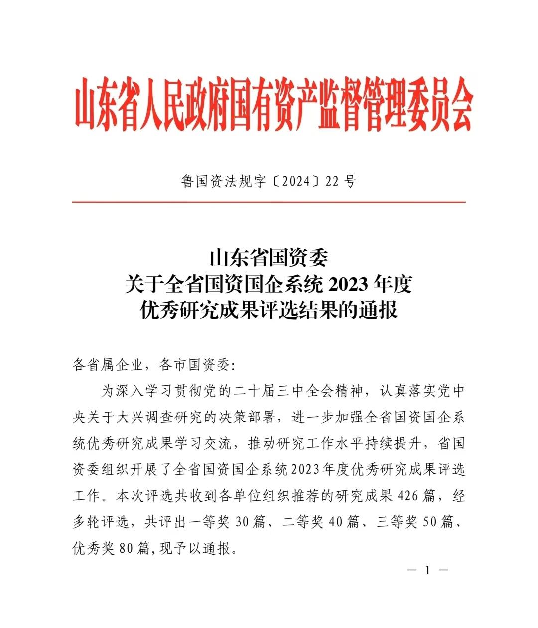 近日,山東省國(guó)資委印發(fā)《關(guān)于全省國(guó)資國(guó)企系統(tǒng)2023年度優(yōu)秀研究成果評(píng)選結(jié)果的通報(bào)》,山東文旅集團(tuán)申報(bào)的6項(xiàng)研究成果獲獎(jiǎng)。其中,一等獎(jiǎng)成果1項(xiàng),三等獎(jiǎng)成果1項(xiàng),優(yōu)秀獎(jiǎng)成果4項(xiàng)。