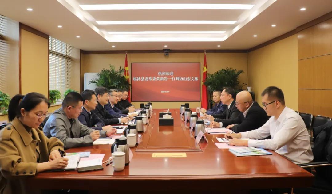 11月21日,臨沭縣委常委、縣紀(jì)委書記、縣監(jiān)委主任黃新巖一行到訪山東文旅集團(tuán),集團(tuán)黨委書記、董事長(zhǎng)丁藝會(huì)見。