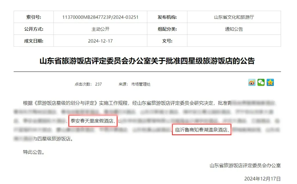 近日,山東省旅游飯店評定委員會公布了星級酒店民宿評定結(jié)果,山東文旅集團旗下四家酒店獲星級評定,臨沂魯商知春湖溫泉酒店、泰安春天里度假酒店獲評四星級旅游飯店,天蒙·雋蘭民宿、山鄉(xiāng)宿集·7蘊海景度假民宿獲評五星級旅游民宿。