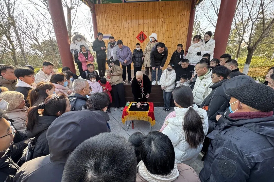 蛇年伊始,萬象更新!大年初一,泰山石敢當(dāng)文化園鑼鼓喧天,人聲鼎沸,熱鬧非凡。景區(qū)啟動(dòng)以“敢當(dāng)護(hù)佑 祥和人間”為主題的泰山石敢當(dāng)祈福游園會(huì),空中賀新年、冰雪嘉年華,新春裝扮喜慶又熱鬧,民俗好戲輪番上演,還有卡皮巴拉、柯爾鴨等萌寵,與游客親密互動(dòng)。此次游園會(huì)自大年初一開始持續(xù)至正月十五,為游客帶來一場(chǎng)充滿傳統(tǒng)文化韻味和現(xiàn)代娛樂元素的新春盛宴。新年第一天,近萬名游客前來祈愿新年幸福美滿。