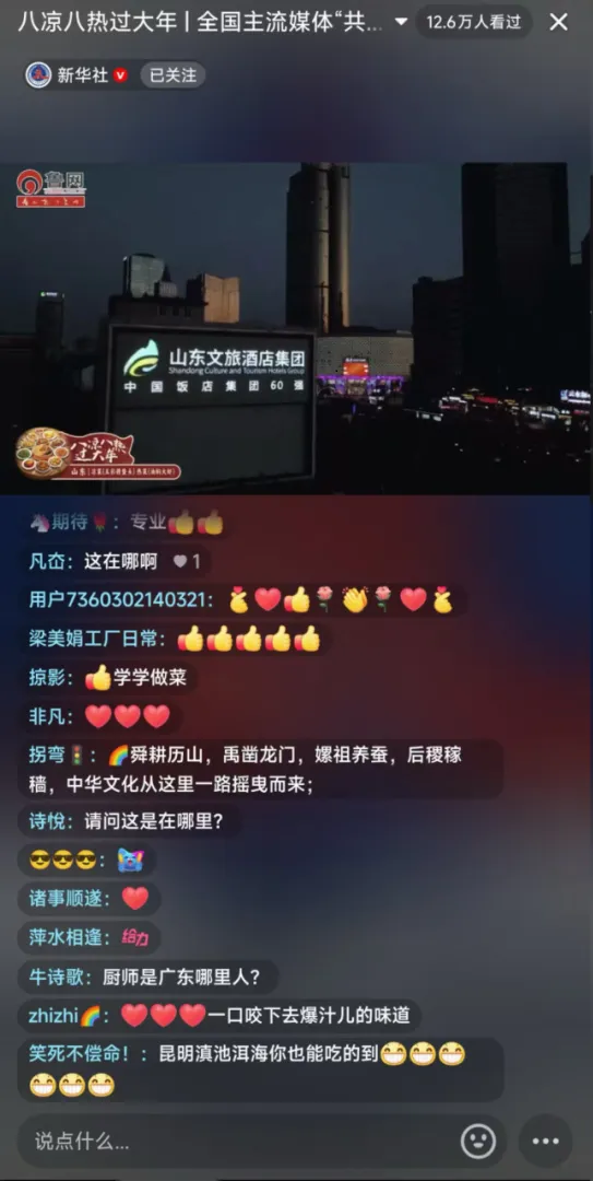 為做好本次全國(guó)聯(lián)動(dòng)直播活動(dòng),更好宣傳推介山東文旅集團(tuán)的產(chǎn)業(yè)品牌,在集團(tuán)協(xié)同創(chuàng)新中心的牽頭指導(dǎo)下,魯網(wǎng)聯(lián)系對(duì)接山東文旅酒店集團(tuán)所屬怡豪大飯店,多方積極協(xié)作,進(jìn)行了精心的策劃籌備,直播中較好地推廣了集團(tuán)品牌,取得了良好的傳播效果。
