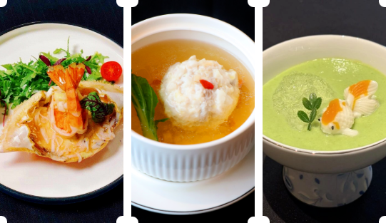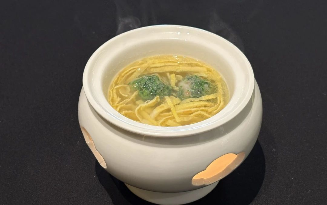 北京泰山飯店的“翠綠蔬菜海參湯”,海參Q彈,豆腐嫩滑,膠原蛋白滿滿。泉城大酒店“有機(jī)蜂巢吐司佐蔬菜”,現(xiàn)切天然蜂巢蜜流淌在烤吐司上,一口感受自然的甜蜜與清新。濟(jì)南頤庭大酒店的“黑松露煎釀春筍”將當(dāng)季春筍釀入蝦膠與黑松露完美結(jié)合。