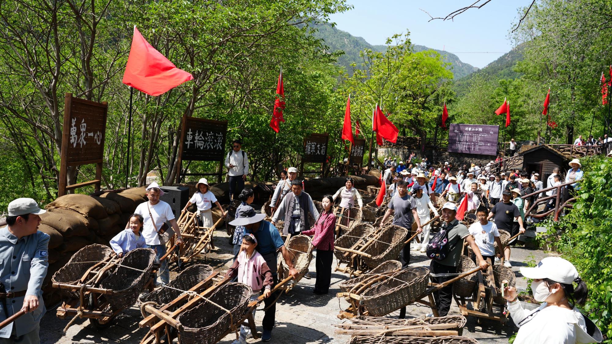 天蒙景區(qū)的《沂蒙山小調(diào)》實(shí)景演藝震撼登場。游客踏入景區(qū),便化身“穿越者”,手持銀票在景區(qū)內(nèi)兌換物資、完成戰(zhàn)時(shí)任務(wù),還能與NPC互動(dòng),沉浸式解鎖“血火歲月”劇情線,讓紅色文旅實(shí)現(xiàn)沉浸式升級,深受游客喜愛。鑫誠田園和萌樂世界讓萌寵經(jīng)濟(jì)跨界破圈,打造“森系電音×萌寵社交×火鍋盛宴”場景,萌鹿伴餐、羊駝巡游、泡泡矩陣與露營天幕構(gòu)成近郊親子游的“多巴胺天堂”。新甫山“世界最長過山車”項(xiàng)目人氣爆棚,鋼鐵巨龍穿梭云霧間,腳下萬株繡球花以莫奈色系鋪就“流動(dòng)油畫”,帶來極限與浪漫的雙重暴擊。五蓮山躺“坪”音樂會邀請武文及原《喜劇學(xué)院》團(tuán)隊(duì)用磁帶金曲喚醒青春記憶,游客枕著花香聽《光陰的故事》,暢享山海之間的音樂療愈。