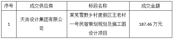 萊蕪雪野鄉(xiāng)村度假區(qū)王老村一號(hào)民宿策劃規(guī)劃及施工圖設(shè)計(jì)項(xiàng)目中標(biāo)結(jié)果公示